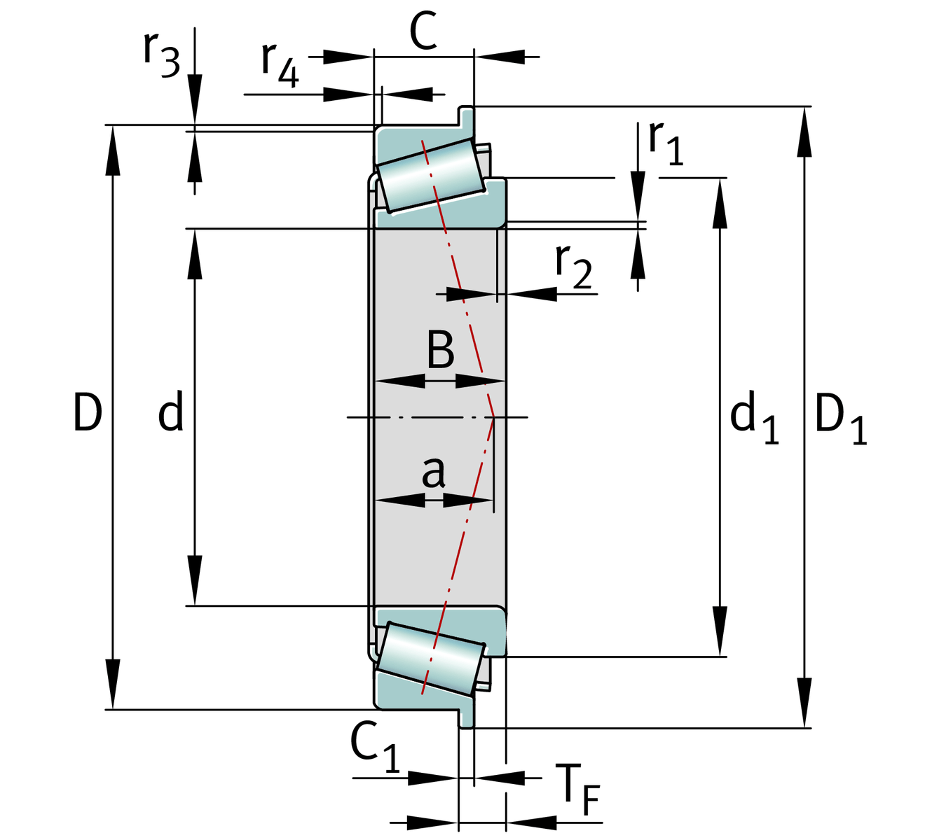 | r3, 4 min | 2 mm | Minimum chamfer dimension of outer ring back face |