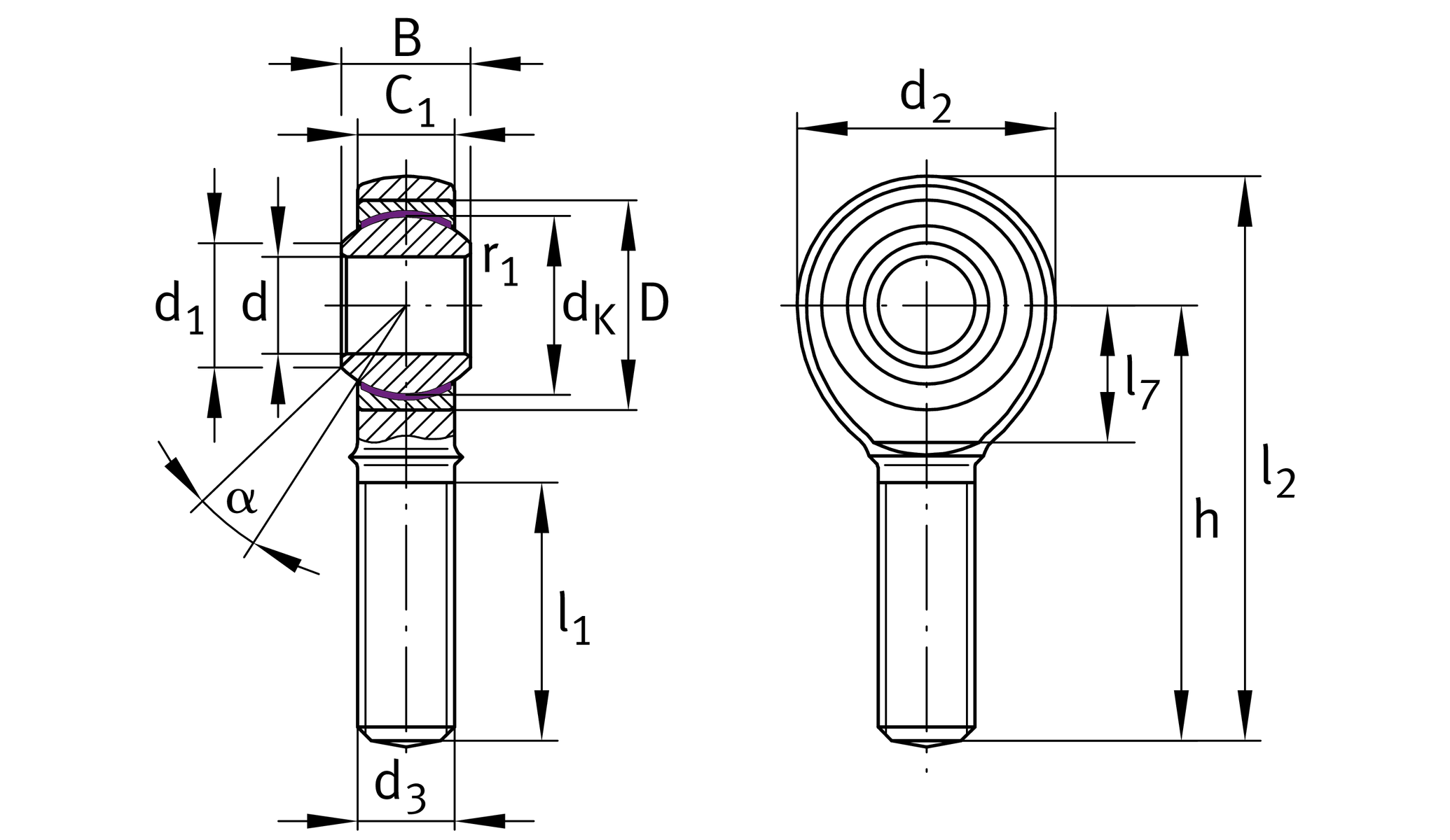| l7 | 37 mm | Length of the flat surface from the bearing bore centre to the shank |