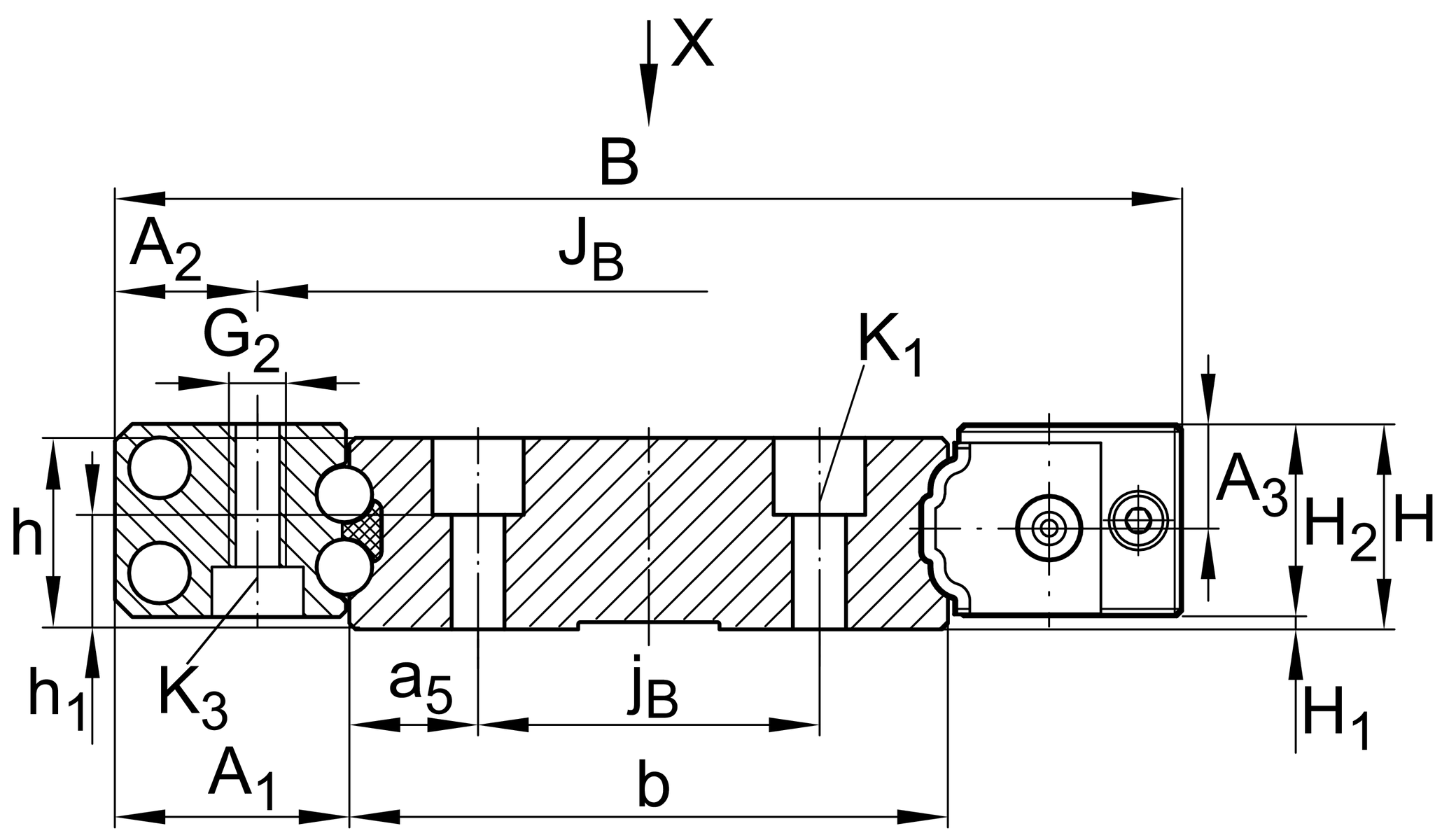 | lmax | 1,960 mm | Max length single piece guideway 1 |