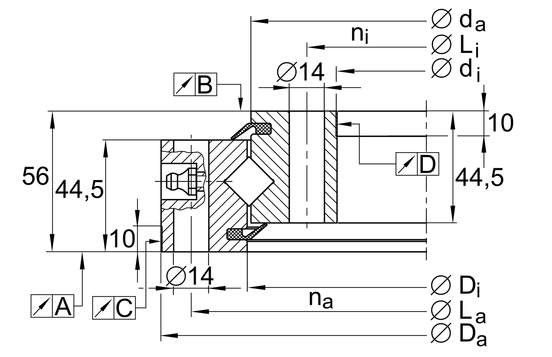 | Li | 368 mm | Pitchcircle diameter fixing holes inner ring |