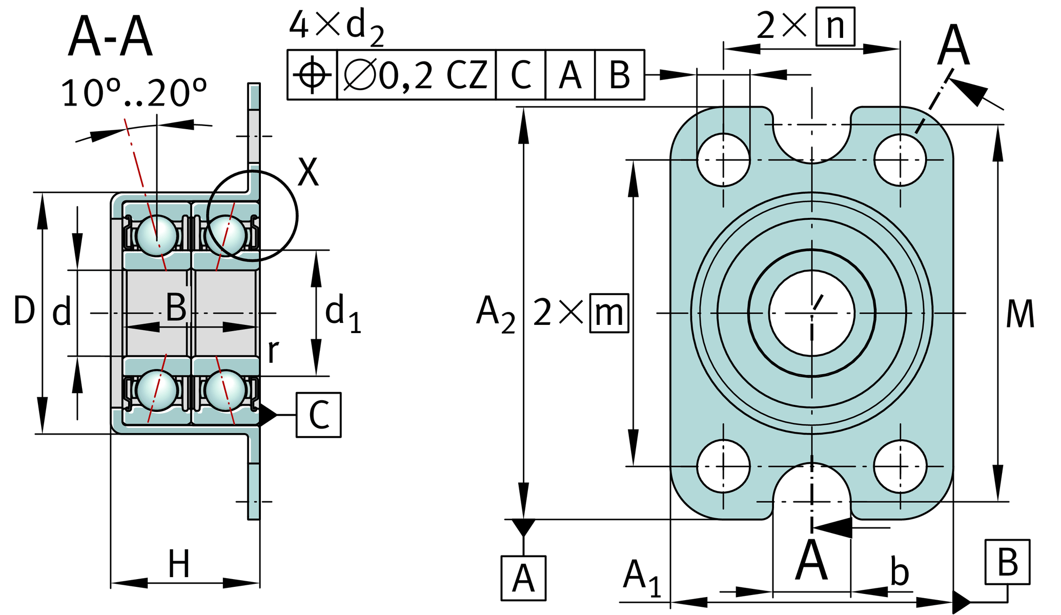| Daa min | 22 mm | Minimum support diameter outer ring outside |