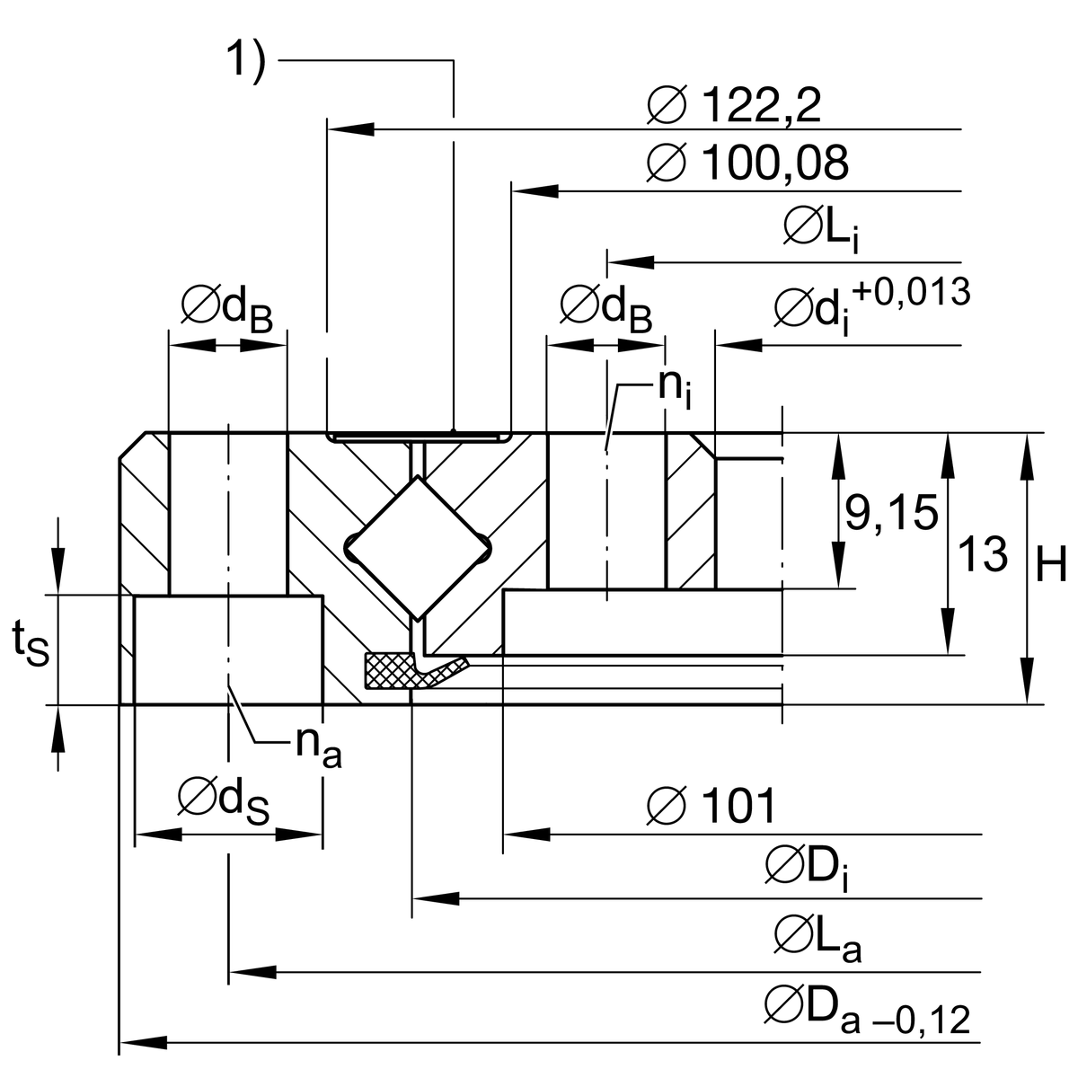 | na | 8 | Number of fixing holes in outer ring |