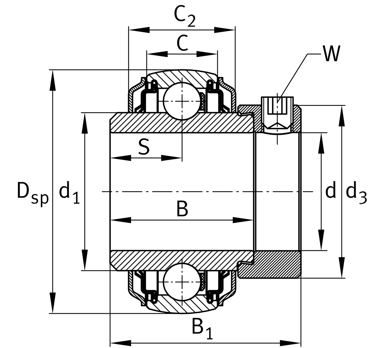 | d3 | 44 mm | Outside diameter locking collar/locknut |