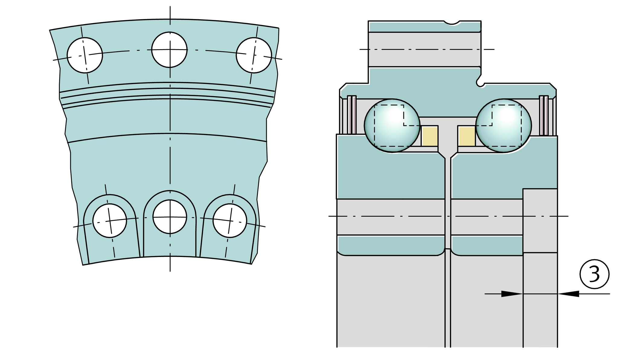| J | 342 mm | Pitch circle diameter fixing holes in inner ring |