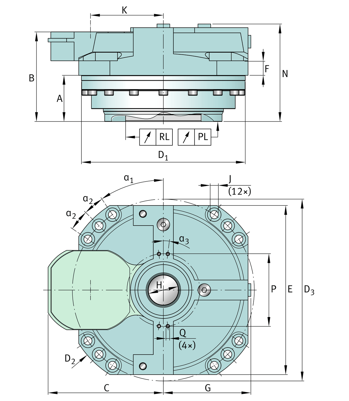 | Design | H | Hollow shaft |