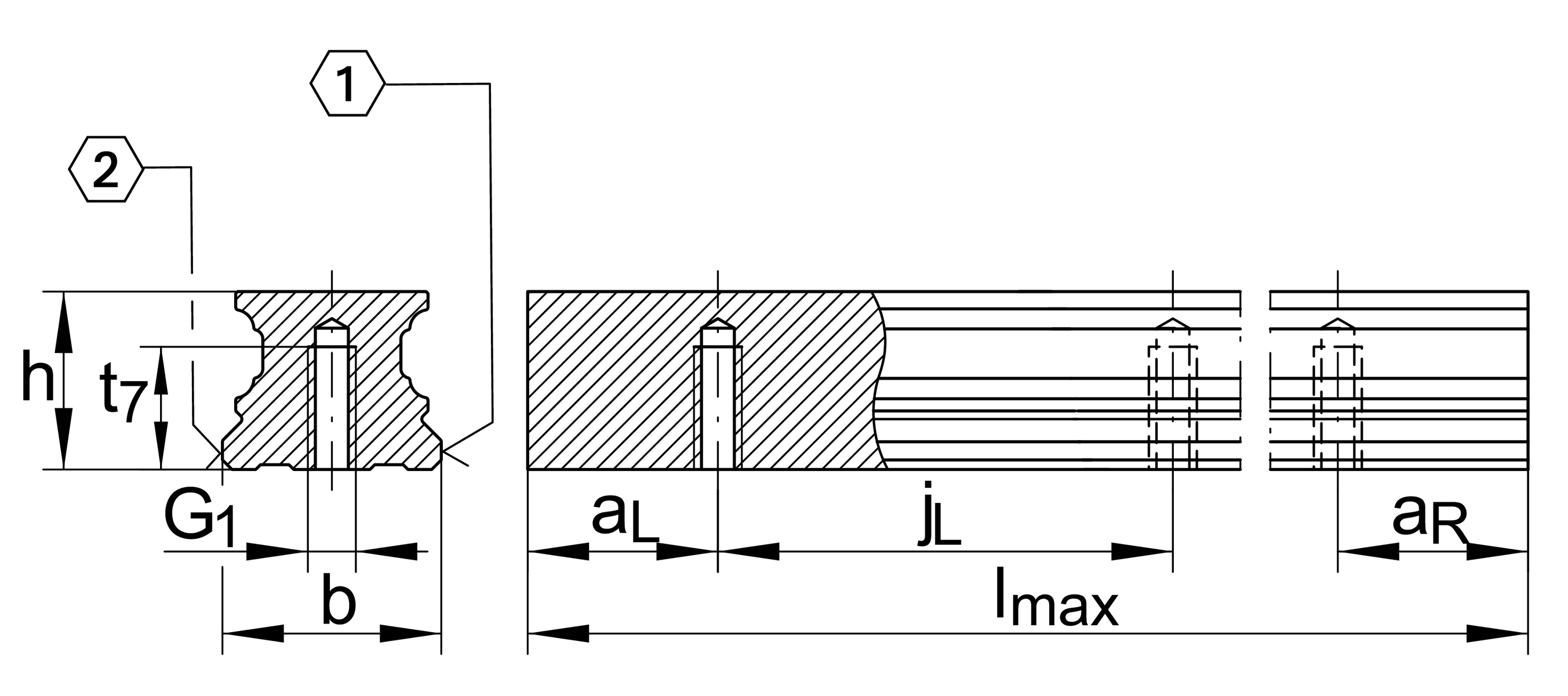| lmax | 6,000 mm | Max length single piece guideway 2 |