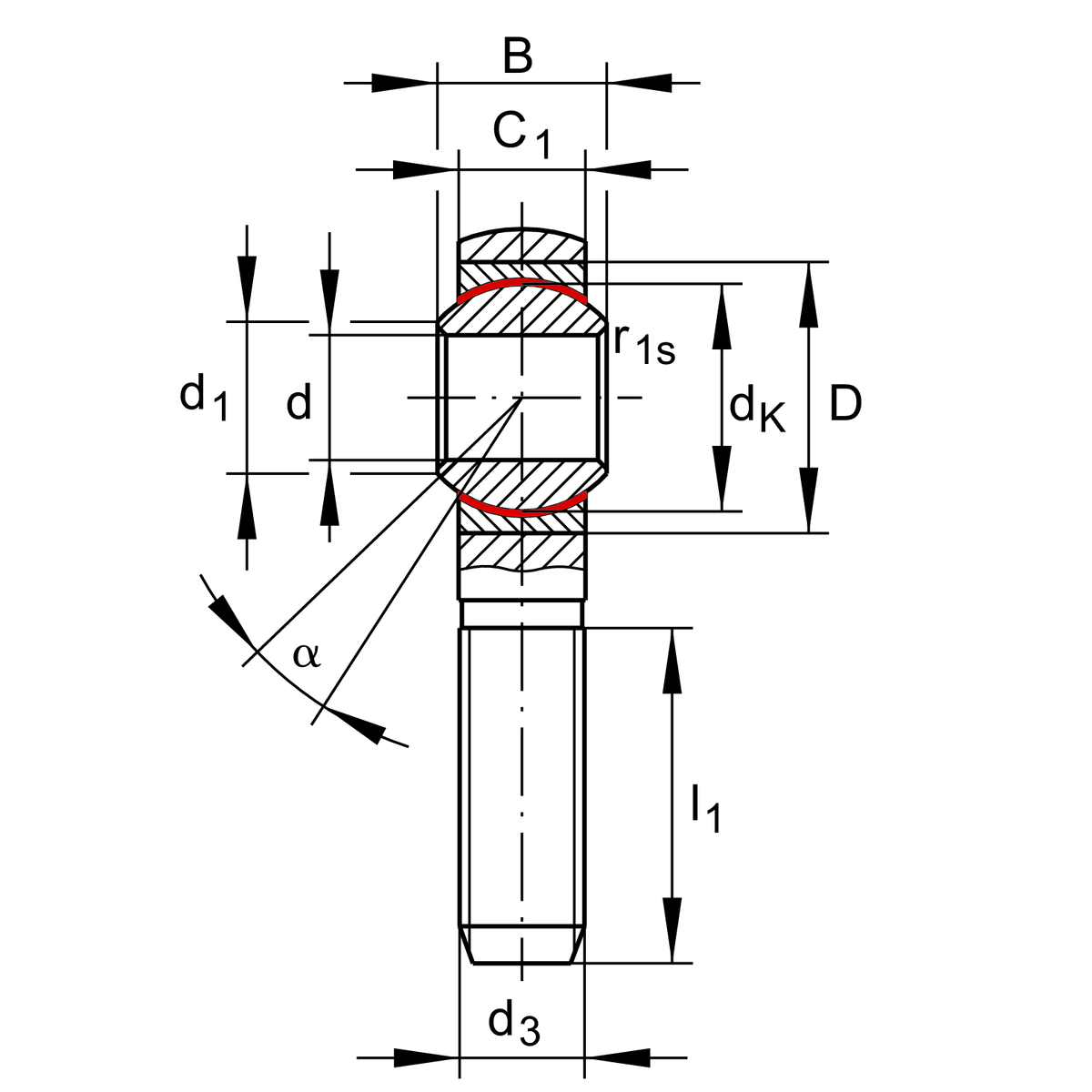 | l7 | 18 mm | Length of the flat surface from the bearing bore centre to the shank |