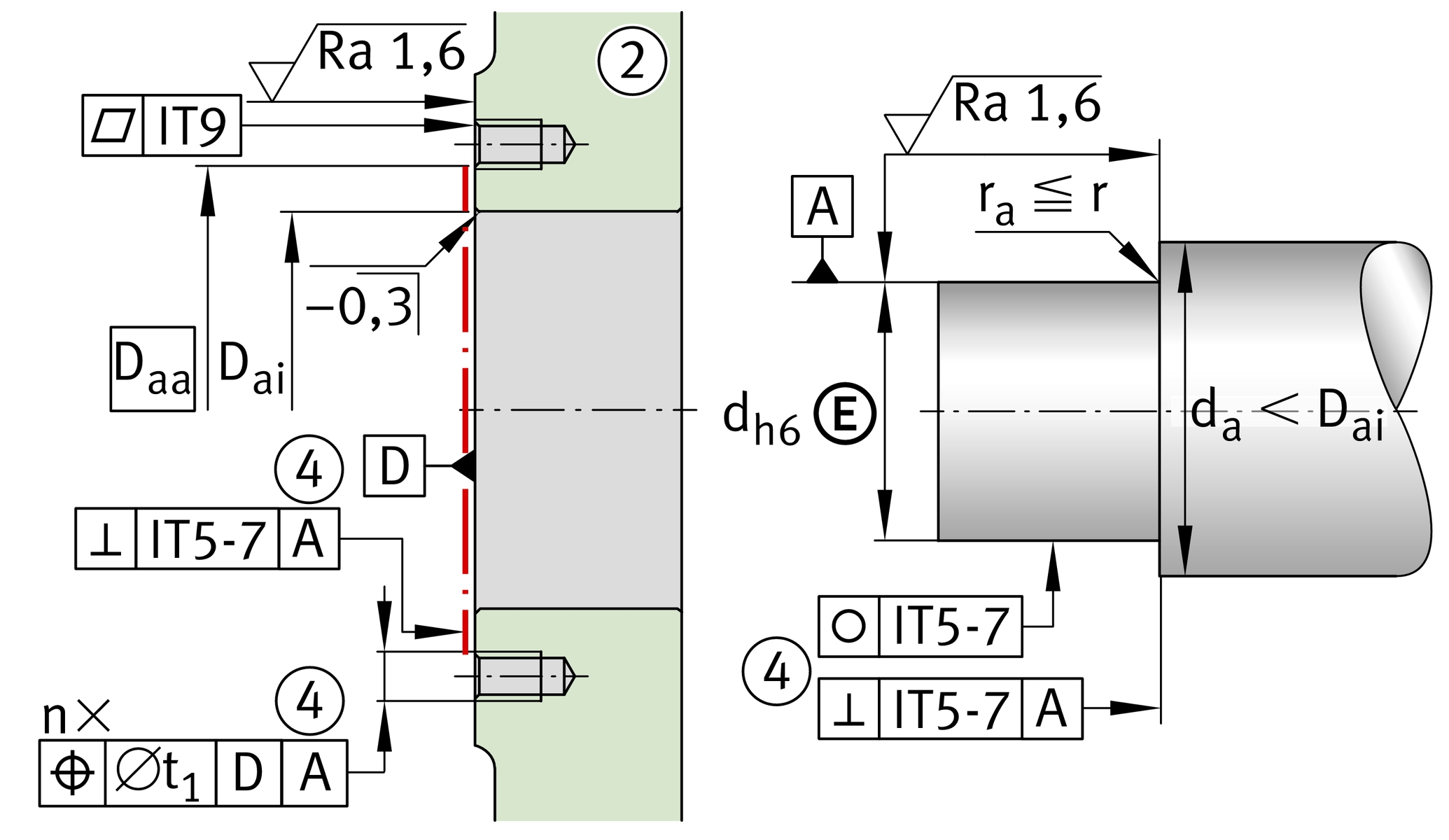 -0.01 mm | Outside diameter bearing pot lower tolerance | |