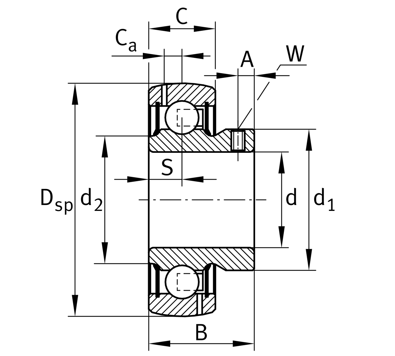 | S | 6 mm | Distance raceway |
