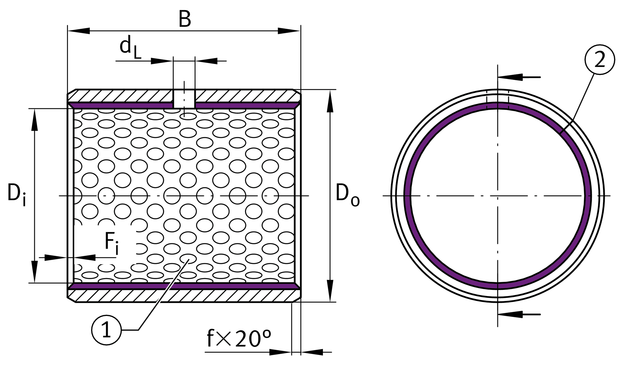 | Material sliding Layer | E50 | Low-maintenance sliding layer with lubrication pockets E50 |