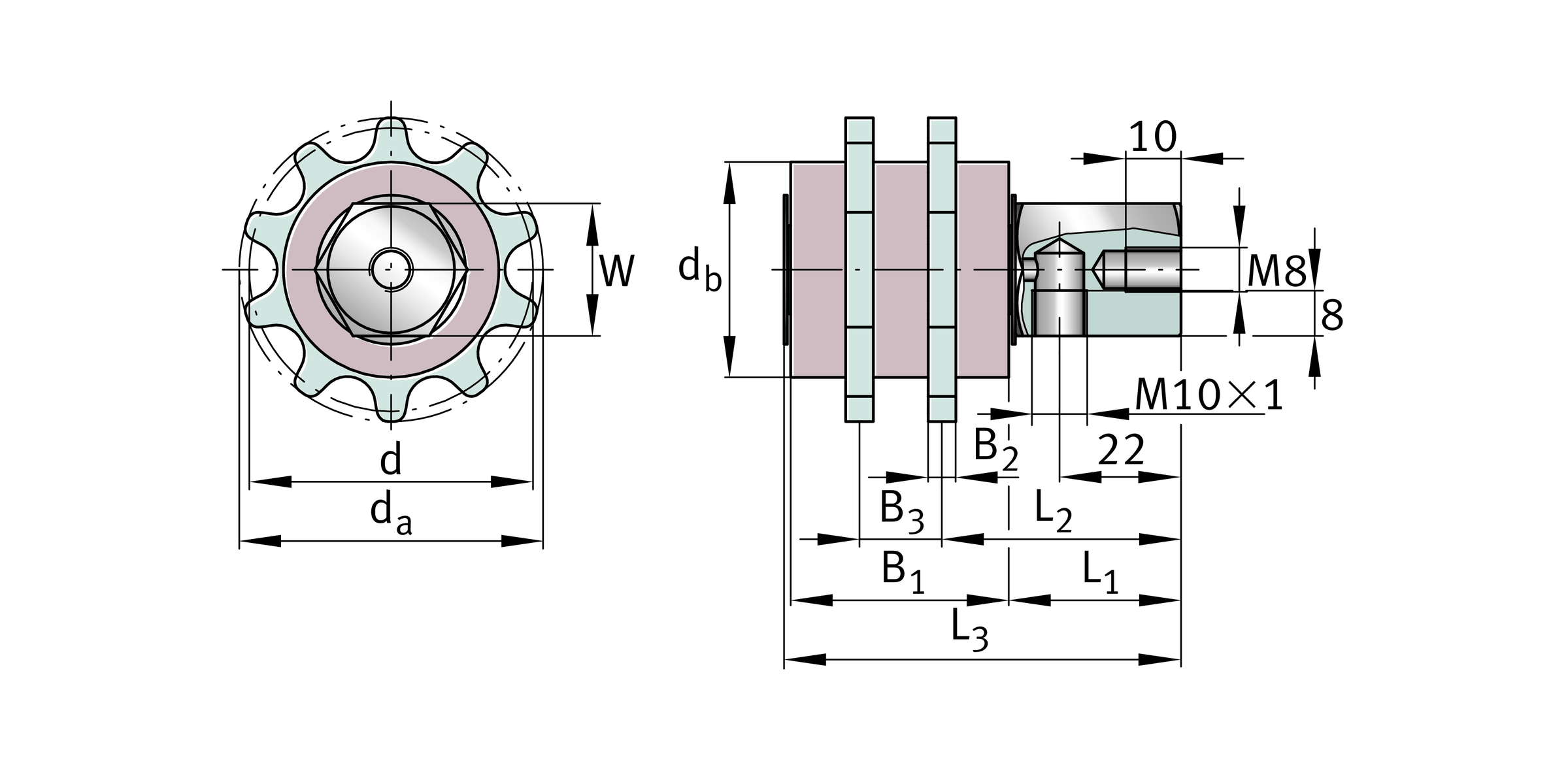 | Version | AB-/B-2 | Chain lubrication pinions, duplex design |