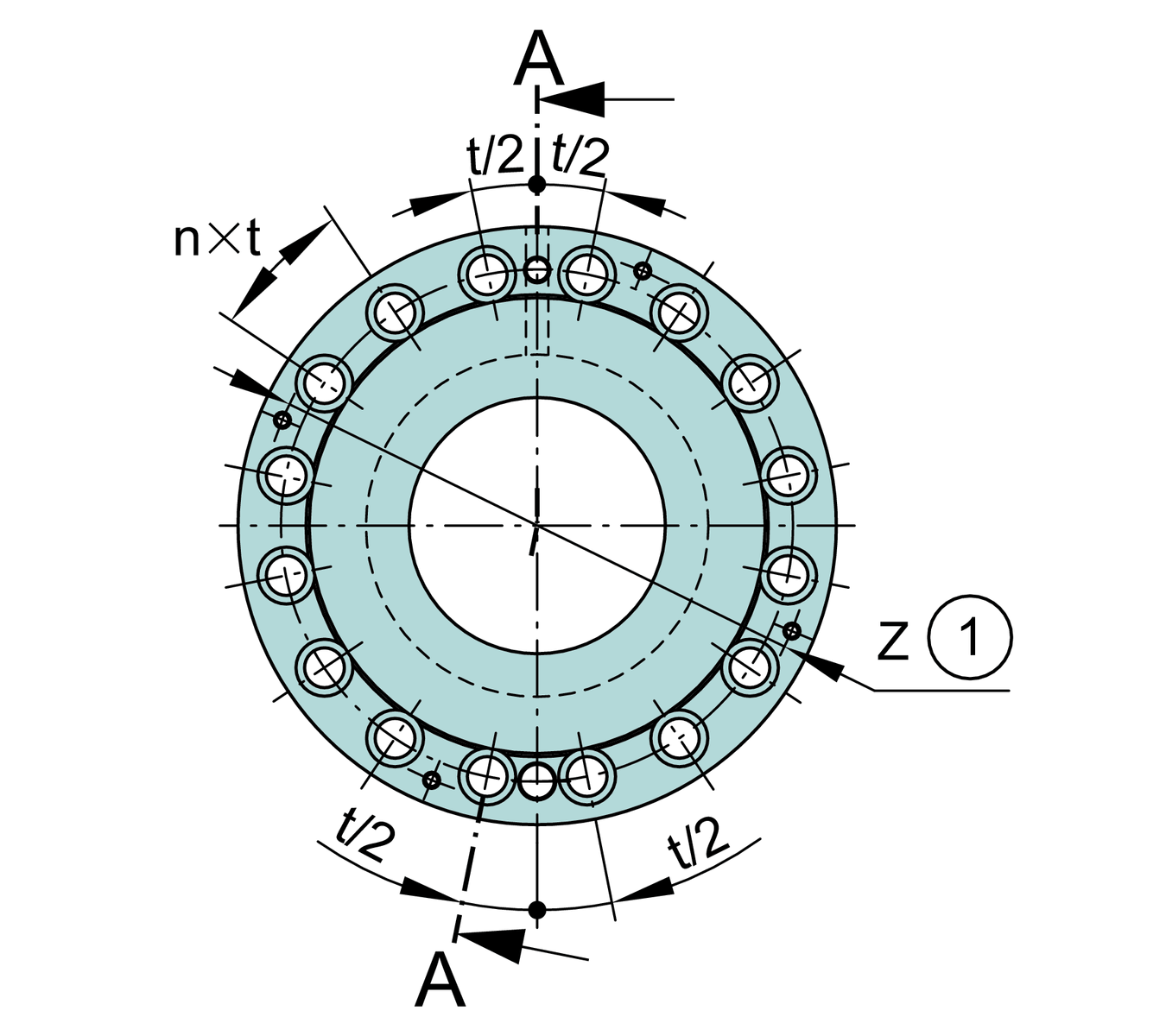 | na x ta | 22.5 ° | Division (screwing holes) |