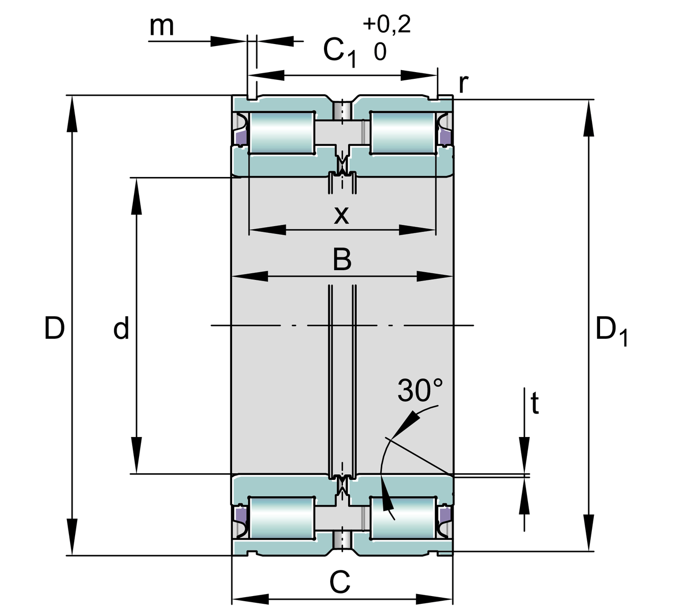 | C0r | 1,100,000 N | Basic static load rating, radial |
