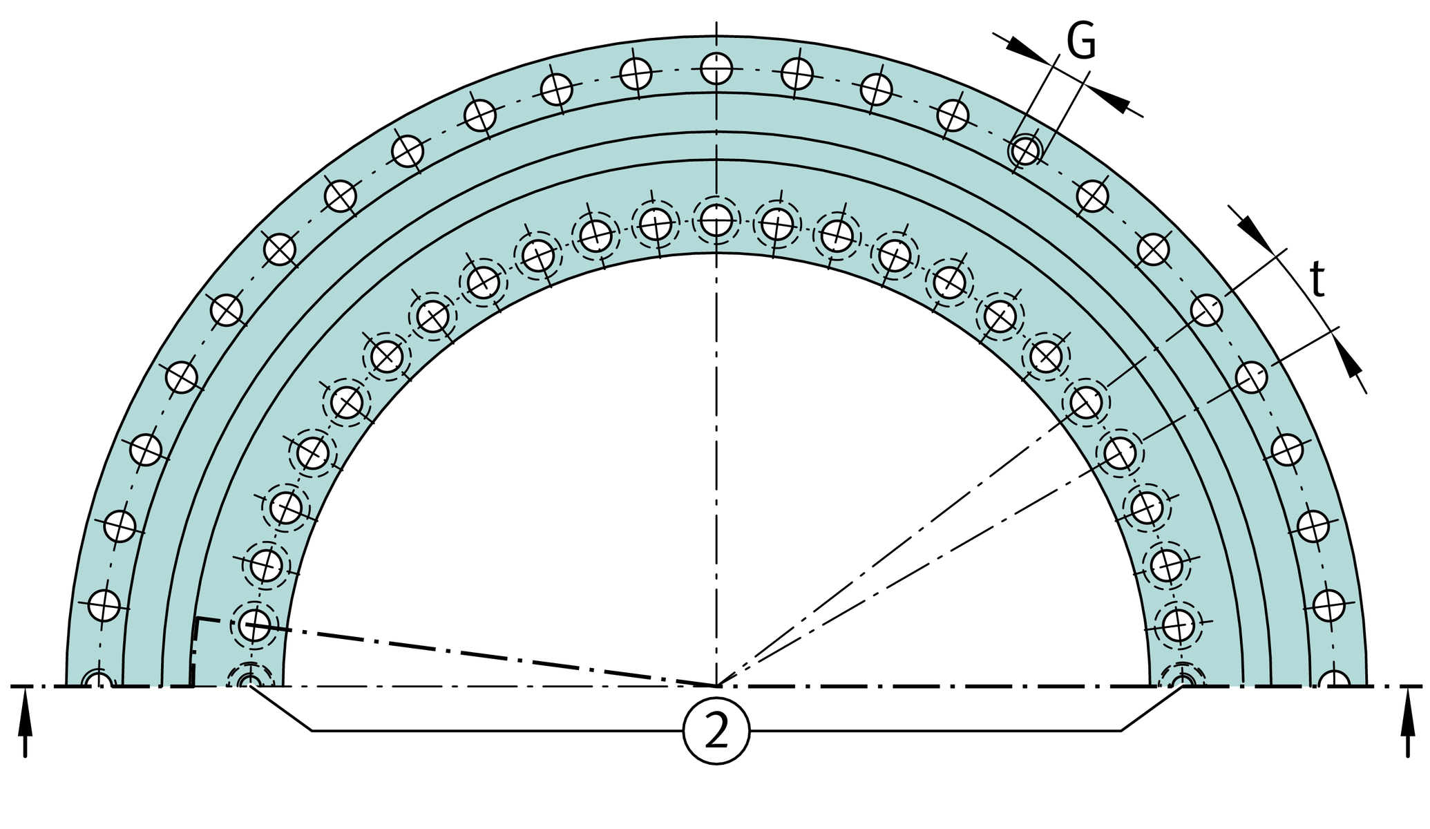 | J1 | 195 mm | Pitch circle diameter fixing holes in outer ring |