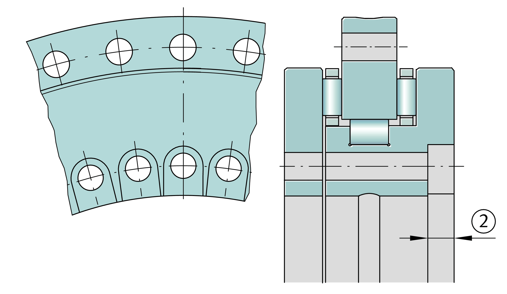 | J | 342 mm | Pitch circle diameter fixing holes in inner ring |