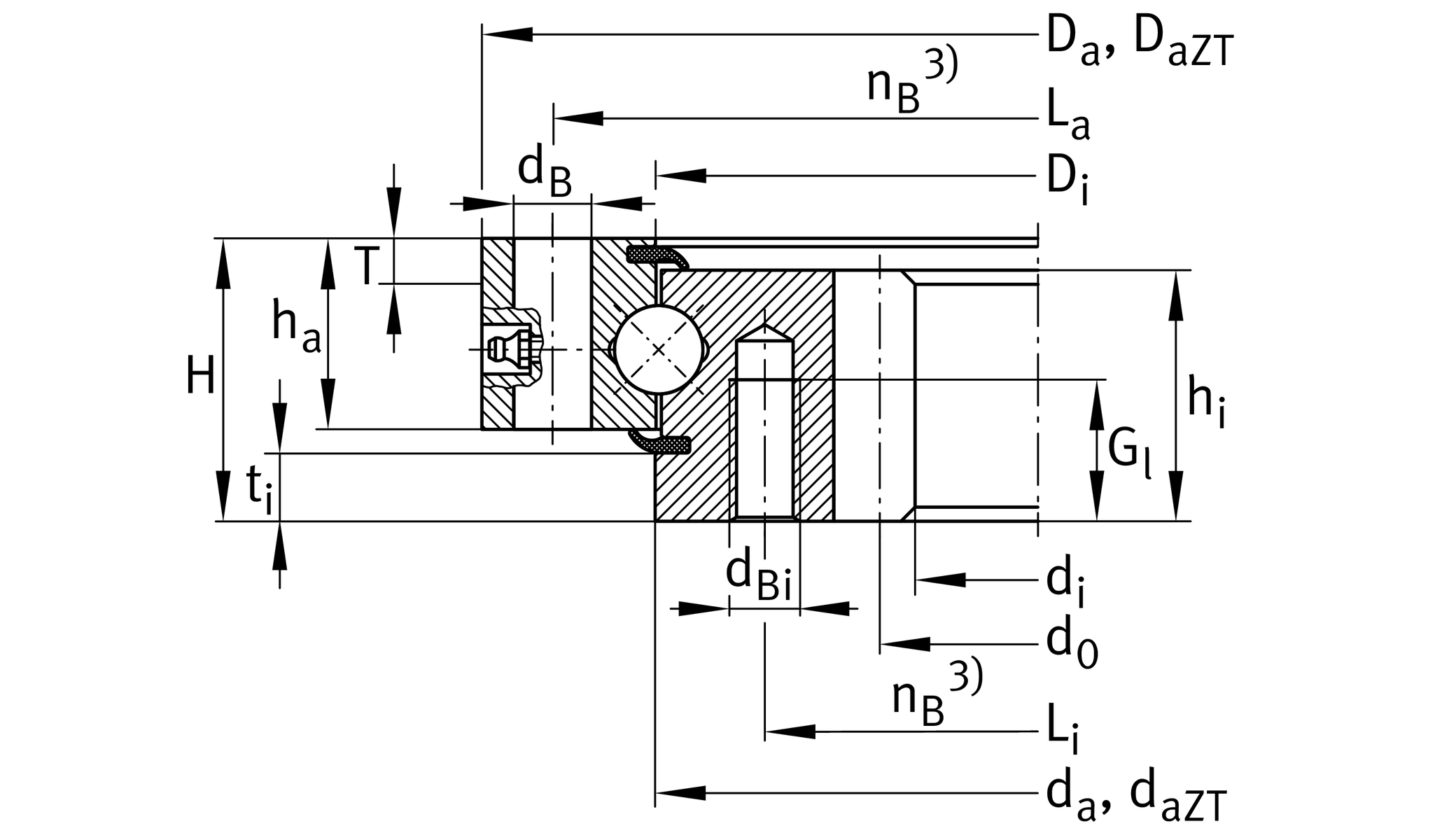 | La | 1,015 mm | Pitchcircle diameter fixing holes outer ring |