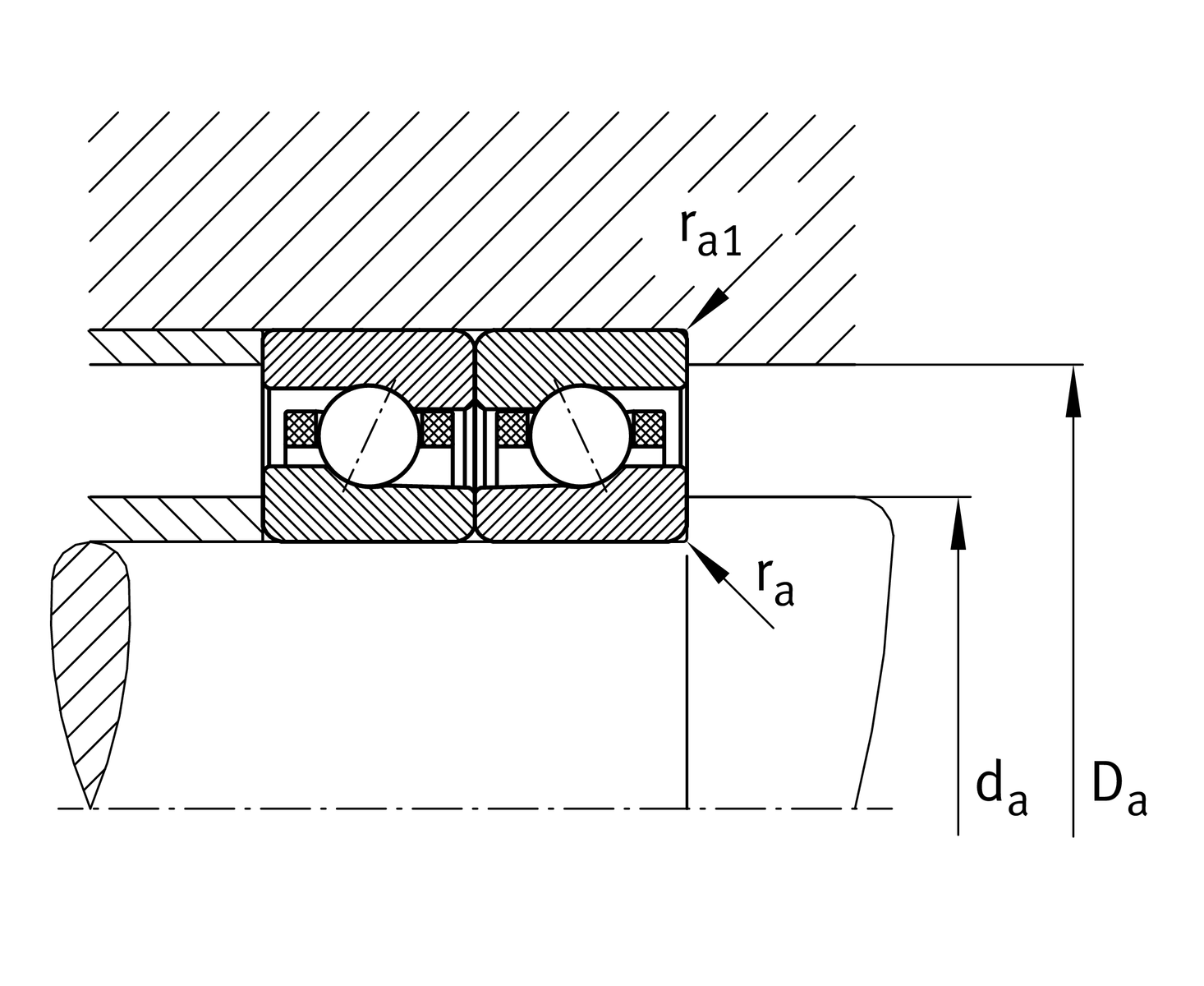 | Da | H12 | Shoulder diameter outer ring clearance |